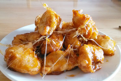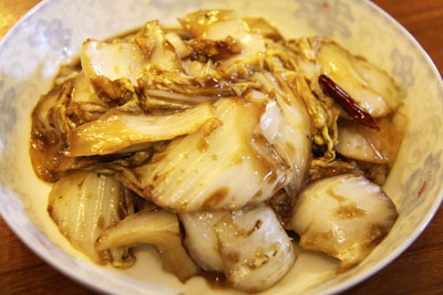 1 Stirfried beef with scallion ( Cong bao niu rou ) 2 Chairman Mao's Red braised pork ( Hongshao rou ) 3 Stirfried cabbage with dark vinegar and chili ( Cu liu da bai cai ) 4 Dessert: Caramel coated sweet potato ( Ba si tu dou )